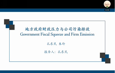 讲座中,孔东民教授分享了探讨地方政府财政压力与公司污染排放之间关系的学术论文。孔东民教授介绍了创作这篇文章的背景、研究的重要性以及运用的实证研究方法。他以农业税制度的产生、发展和废止作为论文创作的制度背景,引出了农业税的取消加大了地方政府财政压力的观点。随后,孔东民教授对实证分析部分作了详细介绍,包括实证研究的数据来源、变量设置、描述性统计、基本回归结果分析、安慰剂检验等,其中,基本回归结果显示,农业税占比较高的地区在取消农业税之后环境污染程度提高。报告中,他还就政府补贴、公司债务压力、是否为外资企业等因素,对地方债务压力与公司污染排放关系的影响作了具体分析。最后,孔东民教授得出了农业税的取消对地方企业污染排放有提升的研究结论。