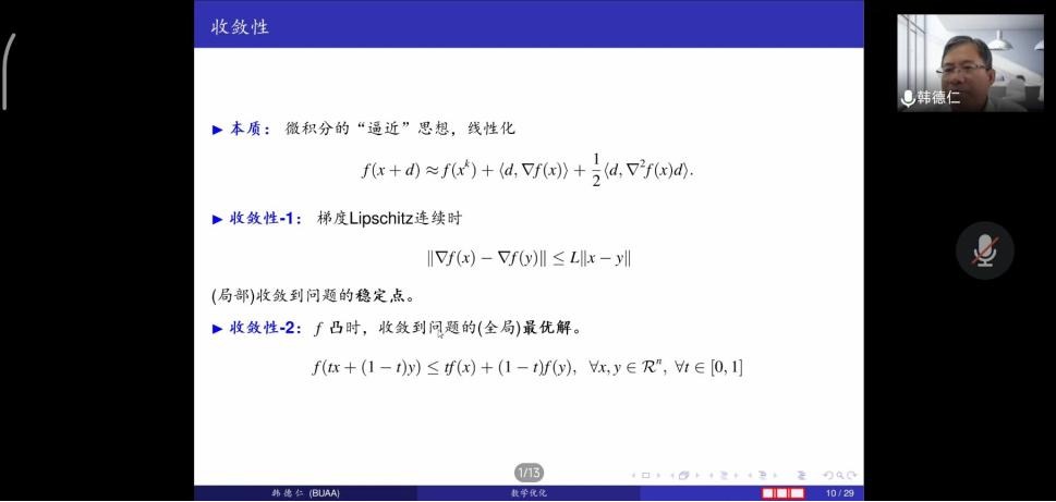 4月27日下午,应应用数学学院邀请,北京航空航天大学韩德仁教授作了题为“机器学习中非凸优化简介”的线上学术讲座。学院硕士研究生、部分教师参加讲座。