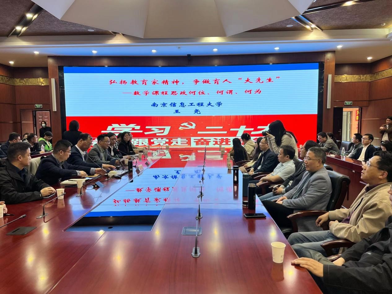 4月11日下午,应应用数学学院邀请,南京信息工程大学原党委副书记、副校长(正校级)、博士生导师王尧教授在仙林校区工科楼二楼报告厅作主题为“大力弘扬教育家精神,争做新时代育人‘大先生’——数学课程思政何谓、何位、何为”的学术报告。应用数学学院党政领导、全体教师、部分研究生和本科生参加学习。报告由bat365副校长张炳教授主持。