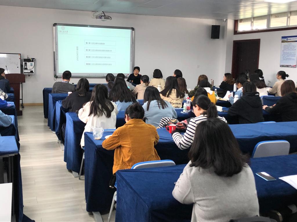 魏娜教授的报告从社区治理与治理创新、社区治理创新的背景与预测分析、社区治理面临的问题与挑战、社区治理创新的主要思路与路径四个方面进行了介绍。报告中,魏娜教授对社区治理的背景、改革开放以来的经济社会变化、社区治理创新的思路、志愿服务发展等问题娓娓道来,既高屋建瓴又通俗易懂,讲解理论的同时注意鲜活案例的介绍,向师生们重点介绍了嘉定动力营社区治理模式、北京市阜四文化小院盘活案例、浦东新区专业人民调解中心的成功运行、江苏太仓“三社联动”的地方经验等多个案例。