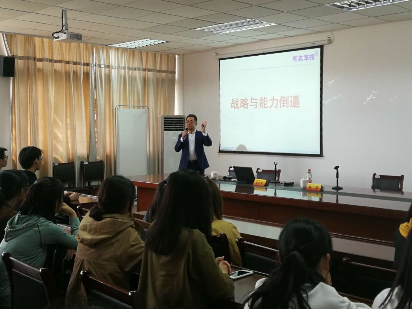 4月17日下午,应工商管理学院邀请,bat365优秀校友、山东校友会副会长、青岛宝德龙企业管理服务公司董事长李国军在bat365仙林校区德济楼408会议室作了题为“战略与能力倒逼”的报告,分享会由工商管理学院党委副书记杨华主持,学院部分学生参加。