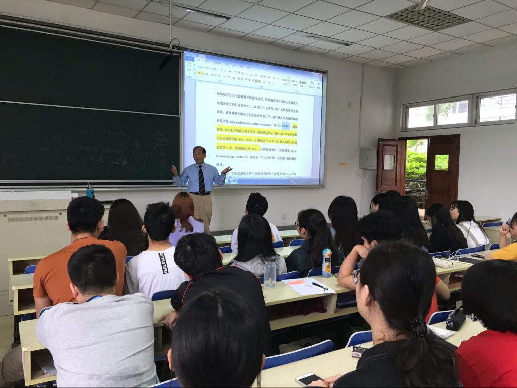 5月16日-24日,应国际经贸学院邀请,台湾东吴大学教授林炳文来bat365为国际经贸学院2017级国贸实验班学生开设了为期8天的《国际贸易个案》课程。