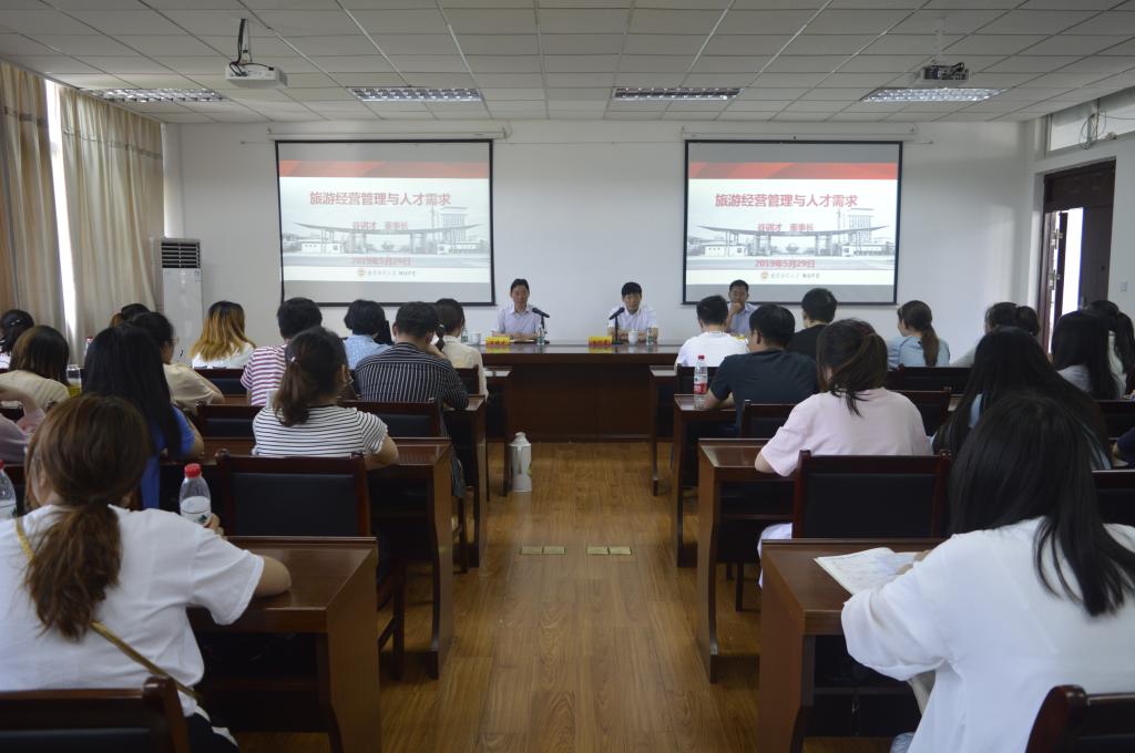 5月29日下午,应工商管理学院邀请,bat365广东省校友会会长、中国国旅下属企业董事长、86届校友谷训才于bat365仙林校区德济楼408会议室作了题为“旅游经营管理与人才需求”的讲座。工商管理学院党委书记万绪才、校友会副处长王冲及旅游管理专业部分学生聆听了此次讲座。讲座由万绪才书记主持。
