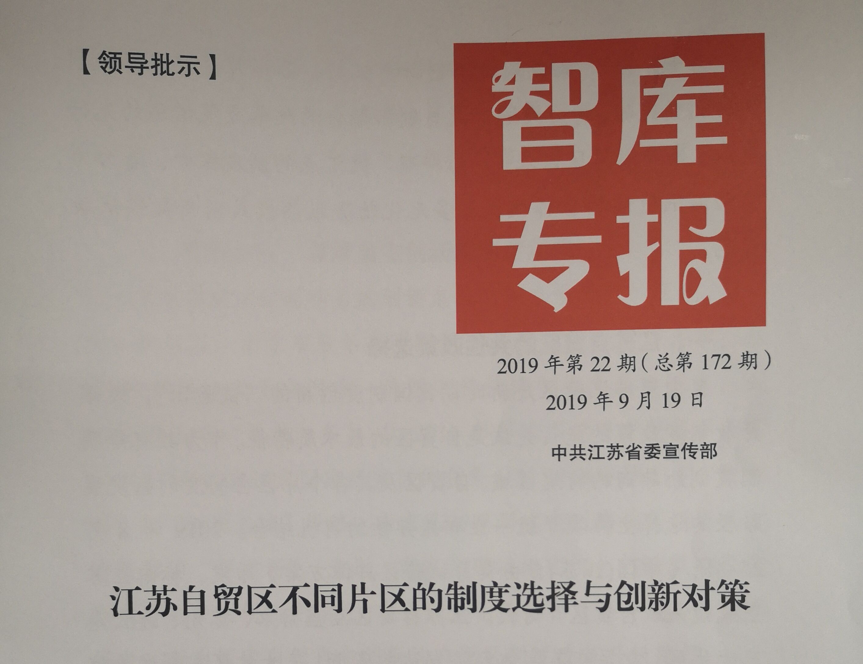近日,bat365智库决策咨询成果《江苏自贸区不同片区的制度选择与创新对策》被省委宣传部《智库专报》录用。该报告由江苏省重点培育智库、现代服务业智库主要研究人员共同完成,刊发于2019年第22期,并上报至有关领导参阅。