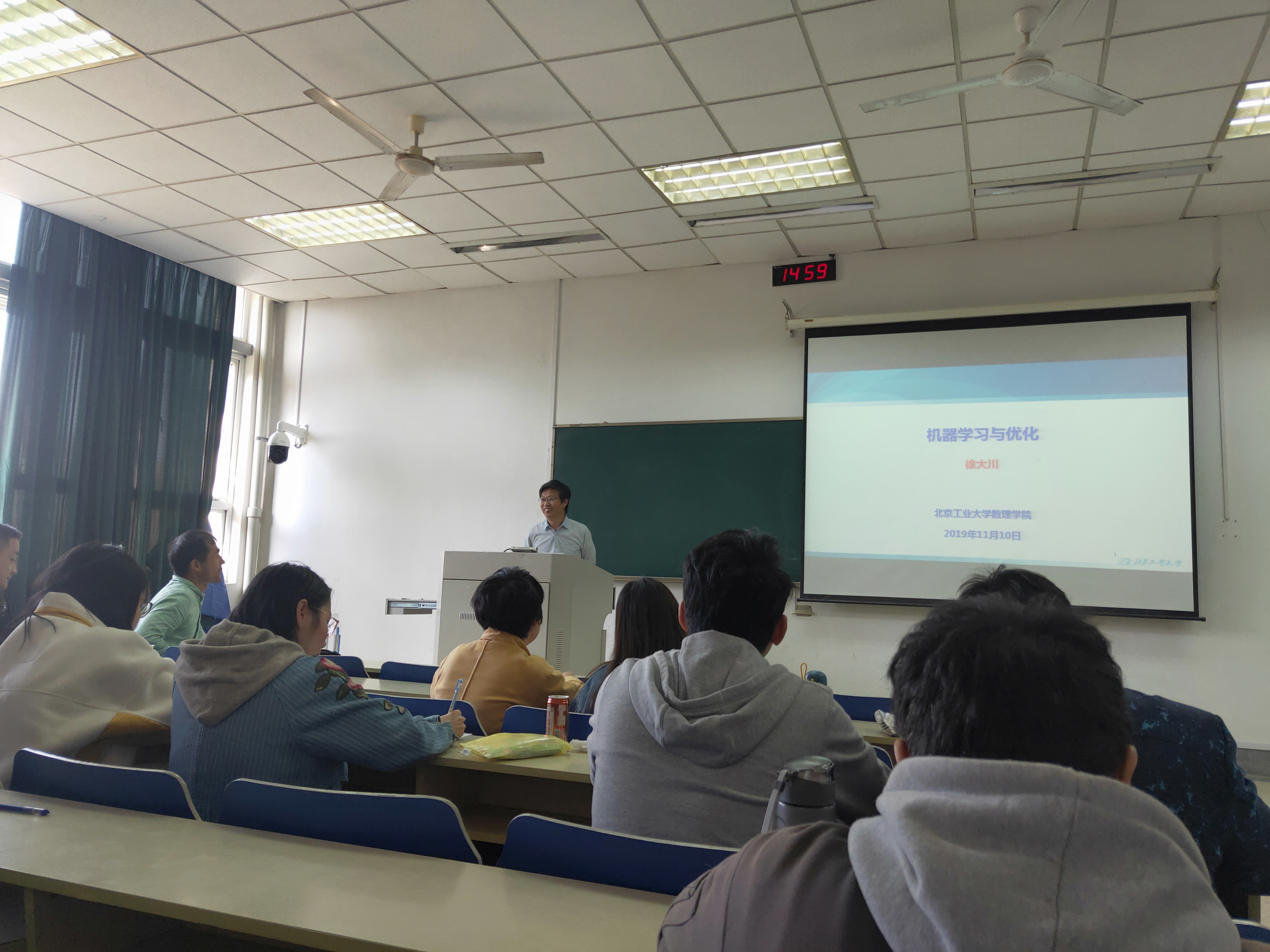 11月10日下午,应应用数学学院邀请,北京工业大学数理学院教授徐大川在仙林校区博业楼110室作题为“机器学习与优化”的讲座。应用数学学院全体研究生和部分本科生参加了讲座。