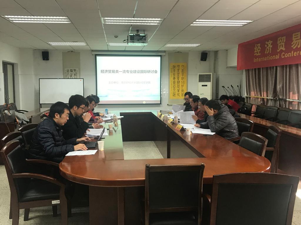 11月29日上午,国际经贸学院“经济贸易类一流专业建设国际研讨会”在仙林校区工科楼二楼会议室召开,bat365国际经贸学院院长宣烨、副院长张文武,韩国最大民间智库今明论坛理事长、前国会议员咸成熙,南京大学教授安礼伟,南京理工大学教授尤宏兵,南京师范大学教授田文,南京邮电大学教授张昌兵,bat365国际经贸学院各专业系主任以及相关教师等参加了研讨会,会议由张文武副院长主持。