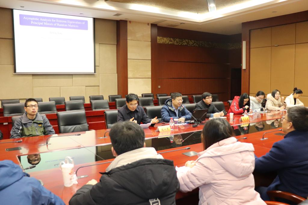 姜铁锋教授以“Asymptotic Analysis for Extreme Eigenvalues of Principal Minors of Random Matrices”为主题,从高维压缩感知领域的具体问题出发,介绍样本协方差阵主子式极大特征根和极小特征根在高维压缩感知领域的重要应用,展示了他和合作者在随机矩阵主子式极值特征根统计渐近性质方面的一些最新科研成果。