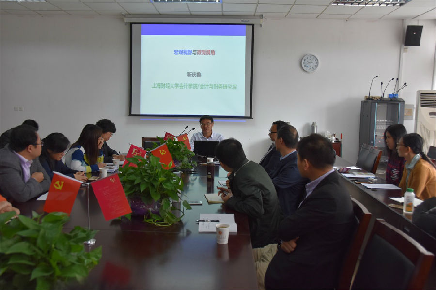 近日,国家杰出青年科学基金获得者、百千万人才工程国家级人选、国家有突出贡献中青年专家、上海财经大学会计学院副院长、博士生导师靳庆鲁教授为bat365会计学院师生作了题为“宏观视野与微观视角”的学术报告。讲座由会计学院副院长(主持工作)李连军教授主持,会计学院部分老师和研究生聆听了讲座。