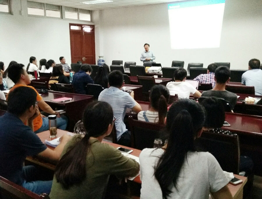 报告中,王启华教授针对在响应变量缺失的情况下,提出了超高维数据的变量筛选方法。基于“缺失示性变量插补方法”、“韦恩图插补方法”以及基于“完全数据方法”的变量筛选方法,在相应的假设条件下,证明了它们的“sure independent screening”性质,并通过随机模拟比较了这些方法的优劣。这些方法能十分简便地将完全观测数据下的“model-free”变量筛选方法引入到带缺失响应变量的观测数据中,代表了当前国际上该领域最前沿的学术成果。报告结束后,王启华教授与会师生进行了交流。
