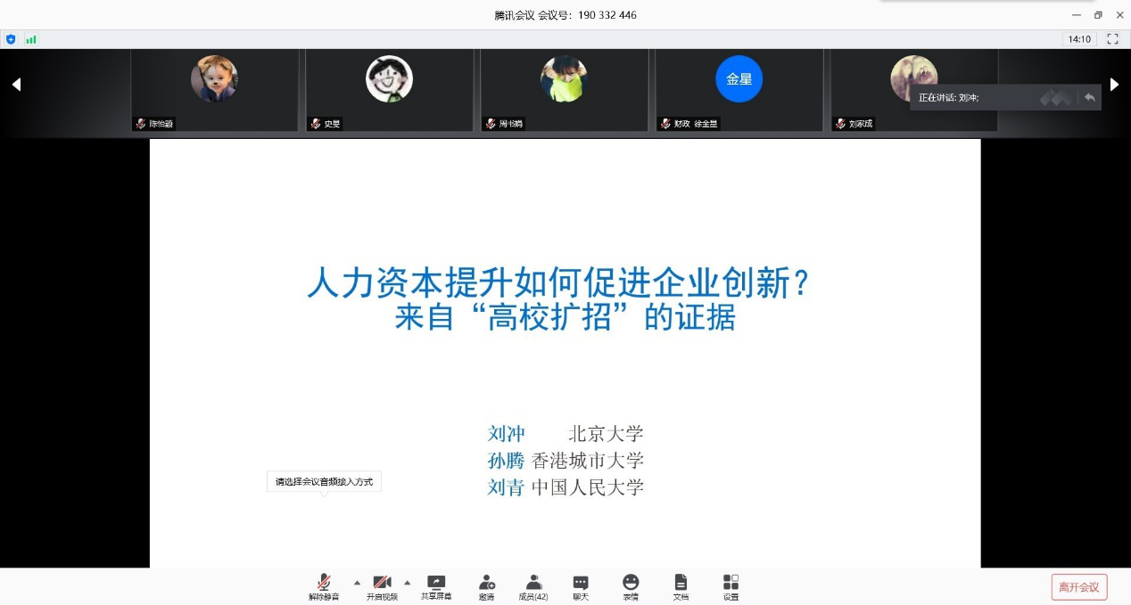 北京大学经济学院助理教授刘冲应邀线上讲学