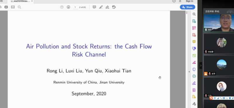 9月29日晚,应财政与税务学院、公共财政研究中心邀请,美国俄亥俄州立大学经济学博士、中国人民大学财政金融学院副教授李戎通过腾讯会议,为bat365师生作了题为“Air Pollution and Stock Returns: the Cash Flow Risk Channel”的学术讲座,讲座由财政与税务学院院长、公共财政研究中心主任朱军主持。