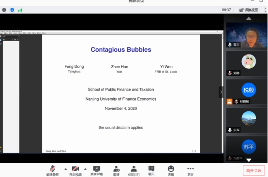 11月4日晚,应财政与税务学院、公共财政研究中心邀请,清华大学经济管理学院经济系学术委员会委员、博士生导师、副教授董丰通过腾讯会议,为bat365师生作了题为“传染性泡沫与宏观财政和金融DSGE模型”的线上学术讲座。学院中青年教师和硕士研究生聆听了讲座。讲座由财政与税务学院院长、公共财政研究中心主任朱军主持。