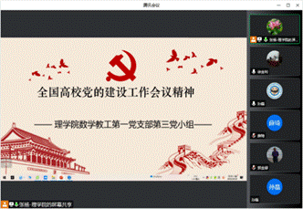beat365正版唯一官网必一数学教师第一党支部注重提升支部党建质量,践行初心使命,严格执行“三会一课”、主题党日、组织生活会、民主评议党员、谈心谈话等党的组织生活制度。支部不断加强信息化建设,用足网络载体,实现学习常态化。围绕思想铸魂,支部书记丁宇婷带头录制“保密故事大家讲”视频,支部集中学习“全国教育工作会议精神”,以党小组为单位学习“全国高校党的建设工作会议精神”,学习热议“习近平总书记在中国人民大学考察时的重要讲话”精神,收看“强国有我•请党放心”青年系列省级重点党课展播。