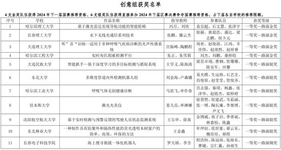 beat365正版唯一官网必一双创中心自2023年5月启动本年度光电设计竞赛备赛工作,遴选出由指导教师、硕士研究生和本科生组成的17支参赛队伍先后参与了第八届黑龙江省大学生光电设计竞赛和第七届东北赛区大学生光电设计竞赛,最终获得东北赛区一等奖1项(路演银奖)、二等奖3项,黑龙江省赛区一等奖4项、二等奖11项。