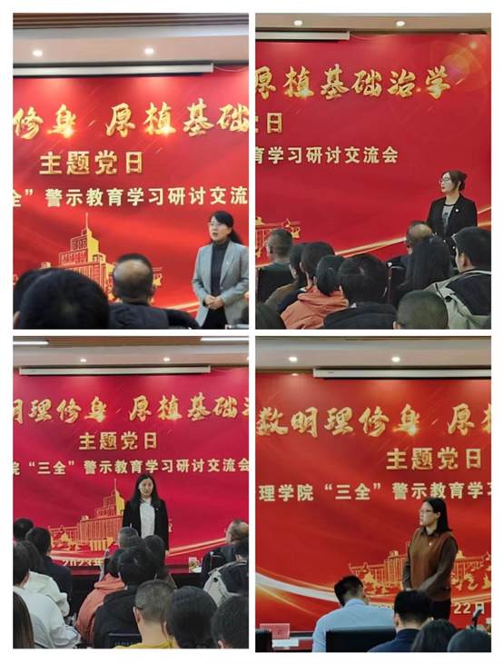 进行师德师风警示教育交流学习的四位党员教师分别选取师生关系、教学纪律、学术不端、不当言论等典型警示案例,结合多年从事教学科研工作的心得体会进行分享。