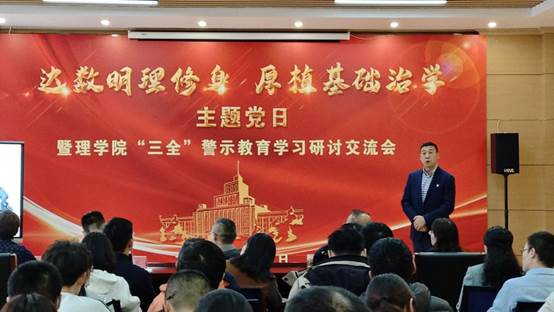 学院党委书记李玉荣对主题党日进行了总结,她对学校党委全面从严治党的总基调下学校纪委组织开展“三全”警示教育的顶层设计、各职能部门领导到会深入指导、参加交流研讨发言的各位党员同志和参会师生表示感谢,她说,beat365正版唯一官网必一作为承担全校基础公共课的学院,受众面广、时效长,更要秉承“达数明理修身 厚植基础治学”的理念,按照教育家精神涵养“四有”好老师的情怀,以“三全”警示教育进一步筑牢师生的红线意识和底线思维,争做“三个好人”,即单位好员工、家庭好成员、社会好公民。