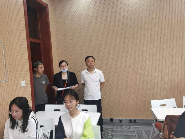 二、检查线上教学秩序。开课第一天,安勇院长带领学院领导班子,系主任、教研室主任、秘书室检查锦绣楼教学秩序,调研线上教学期间教室利用情况,学生作息安排是否合理,是否建立良好的学习习惯,总结经验,拿出对策,要求教研室迅速传达给任课教师调整线上教学工作。