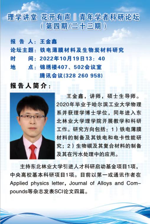 理学讲堂 花开有声‖青年学者科研论坛(第四期/二十三期)