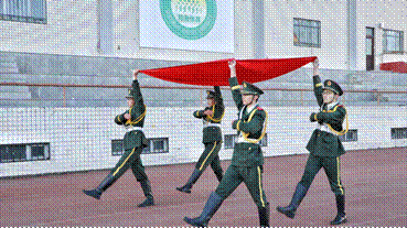 清晨7点,仪式开始,英姿飒爽的仪仗队队员护送鲜艳的五星红旗入场,错落有致的步伐,坚定不移的眼神,充满着青春的正气与力量。