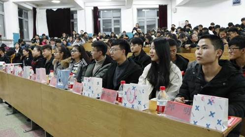 随着主持人宣布比赛开始,马上就进入了比赛的第一个环节“牛刀小试”。在本环节每支队伍需要回答两道必答题,这些题目拓宽了同学们的视野,也让参赛队伍掌握了比赛的节奏。第二个环节是“顺藤摸瓜”,参赛队伍需要根据题目的提示回答问题,所依靠的提示越少,得分越高。这不仅考验选手的知识储备,也考验着选手快速分析问题的能力。第三个环节“科技成果展示”,各支代表队依次展示了自己的成果:化学类专业三四班代表队的“自制懒人支架”、数学与应用数学专业代表队的“自制投影仪”、信息与计算科学专业代表队的“高空中的鸟儿”、化学工程与工艺专业代表队的“简易报警器”、物理学专业代表队的“便携式加热袋”、化学类专业一二班代表队的“水果电灯”,无不充满创意,让大家眼前一亮。第四个环节是“我爱大冒险”。本环节的题目涉及常识、文学、地理、科学、体育、历史六大方面内容。顾名思义,本环节具有极大的不确定性,选手需要根据自身情况合理选择题目,否则极易失分。第五个环节为“观众互动”,本环节由相应专业观众答题,考验了在场同学的知识储备。本次竞赛的第六个环节是“逻辑推理”,即给出一段文字,选手根据文字内容推测答案,考验的是大家的独立思维与逻辑推理能力。在正式竞赛结束之后,是本场的第七个环节:娱乐环节——听歌识曲。全场观众和参赛选手均可参与,说对歌名即可获得精美小礼品一份。