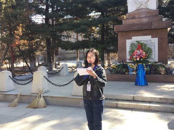 之后,崔仙赢同学做墓前演讲。她的演讲铿锵有力,引起了大家的强烈共鸣。