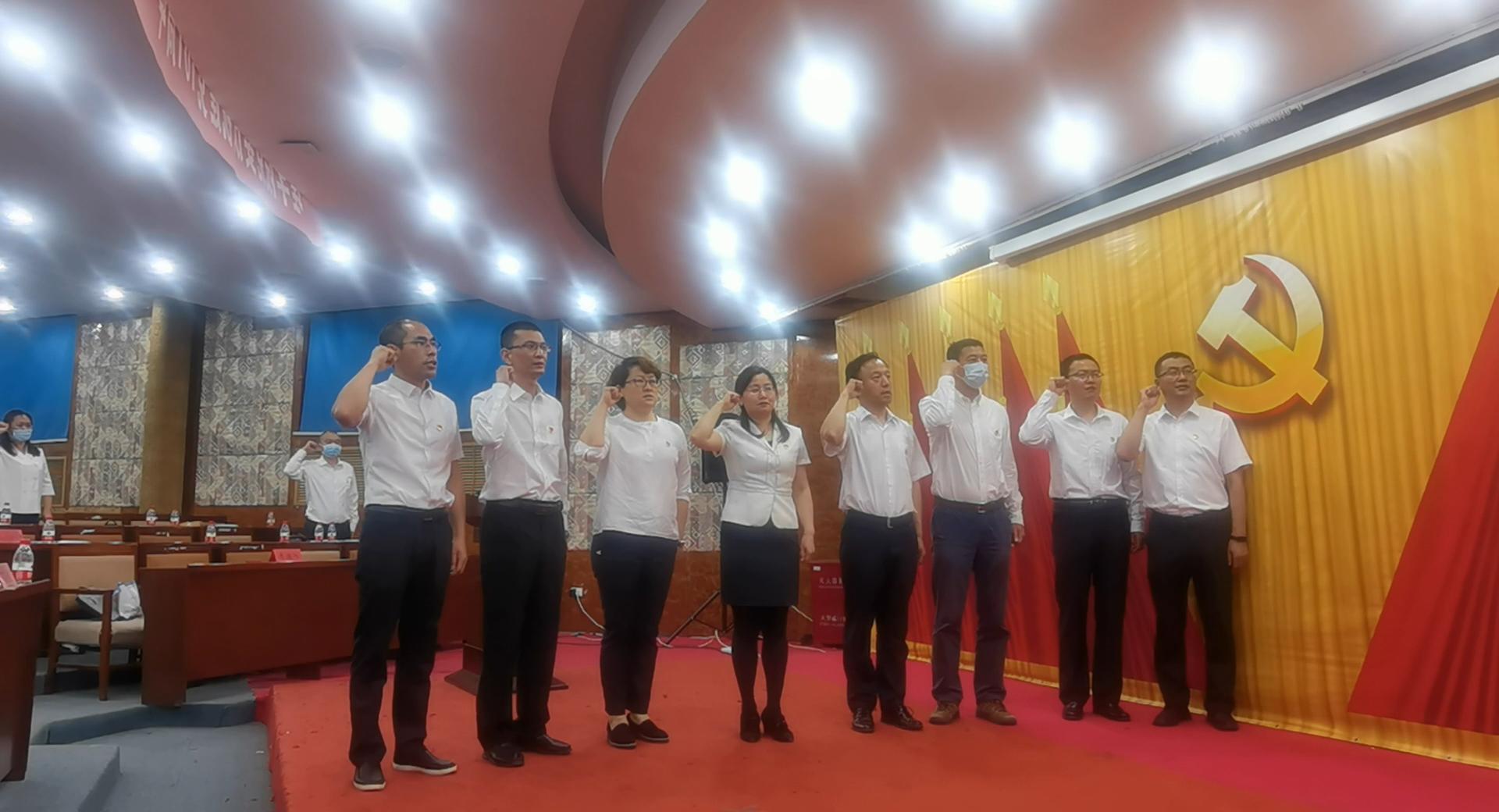 会议伊始,beat365正版唯一官网必一党委第四届委员会委员与学院全体师生党员在李玉荣的带领下,庄严面向党旗,预备党员进行入党宣誓,正式党员重温誓词。